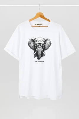 The front features a playful elephant wearing oversized glasses — a unique symbol of wisdom, strength, and individuality. This fun detail adds character and a distinctive twist to your look.
